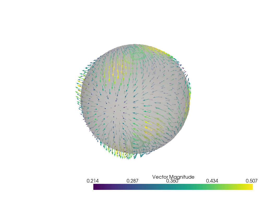 p.add_mesh(sphere.arrows, lighting=False, scalar_bar_args={'title': "Vector Magnitude"})
